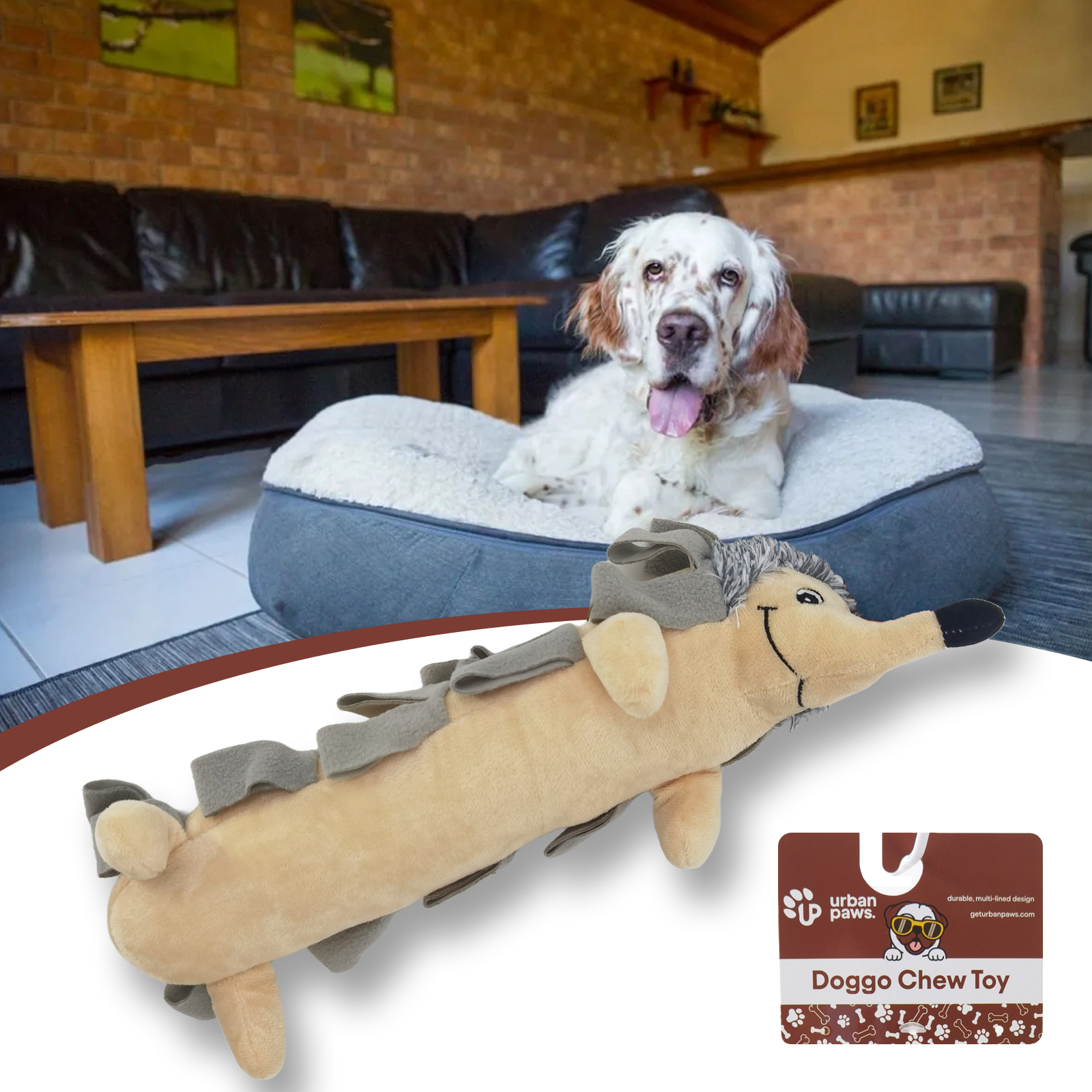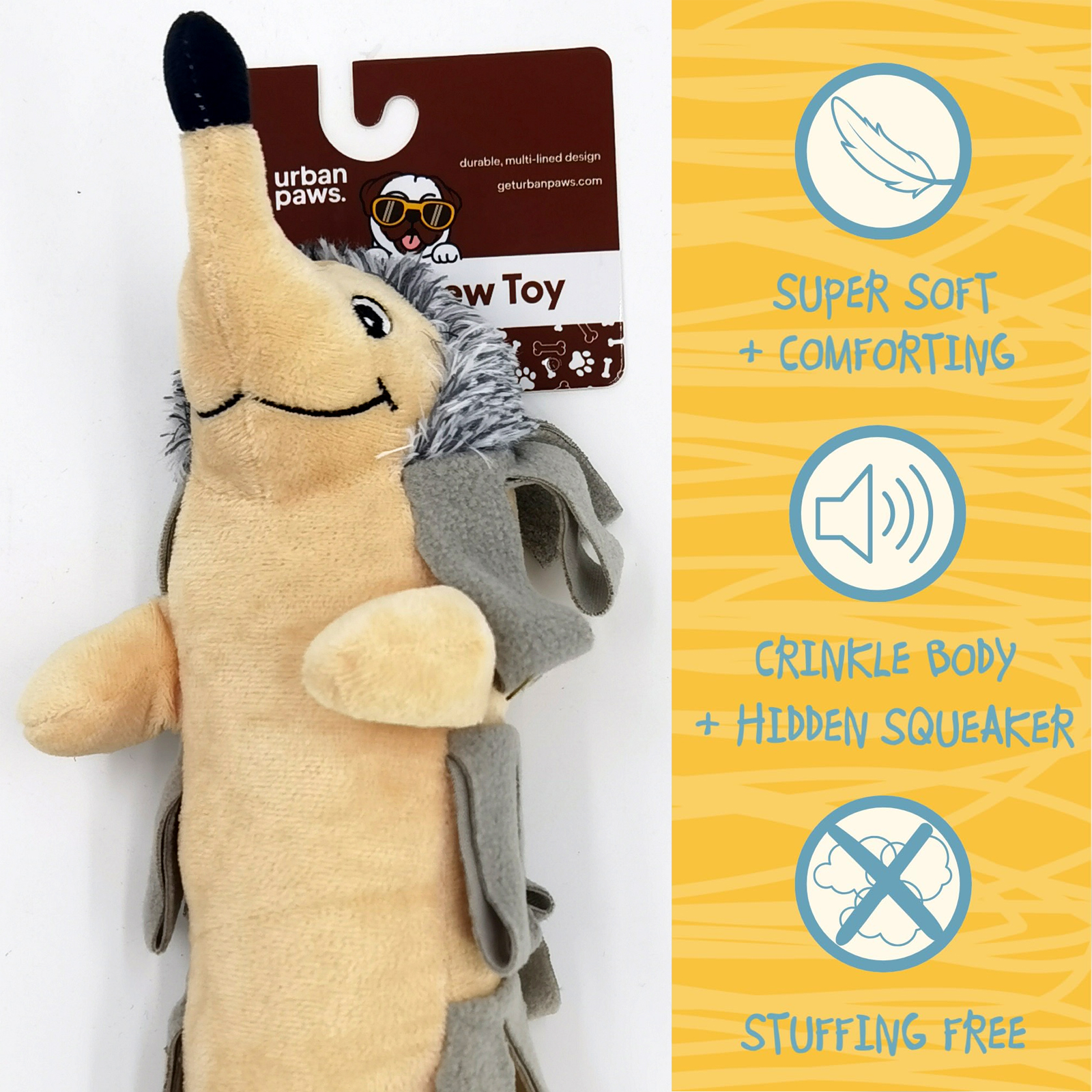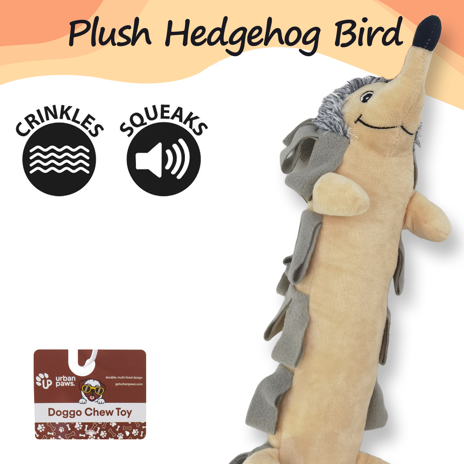Playtime will be more exciting with the 16″ Hedgehog Plush Toy from GetUrbanPaws! Designed for interactive fun and cosy cuddles, this adorable hedgehog is perfect for dogs who like to chew, fetch, and cuddle.